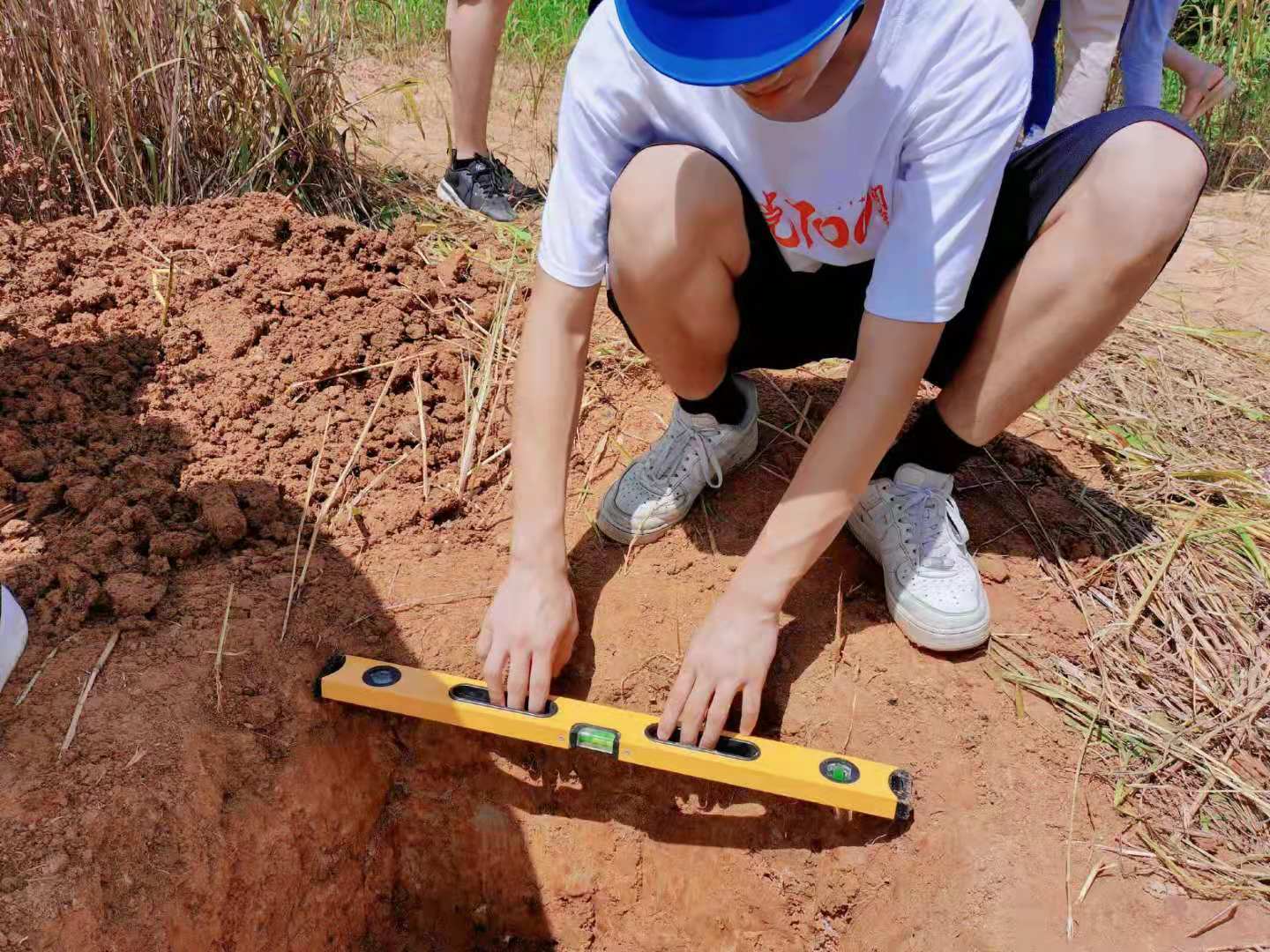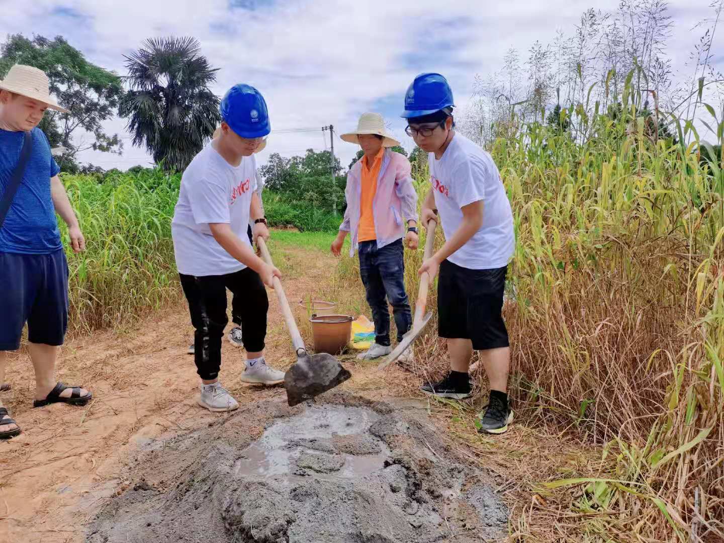 进贤县国家电网相关负责人带领团队介绍了整个安装过程的流程,强调施工及用电安全,并与团队负责人商讨了具体事项。在专业人员的指导下,团队进行地基钻打和处理工作,各成员合理分工,充分发挥专业优势,参与定点测量、地基挖掘、钢筋搭建、浇筑填坑等工作。经历数小时的施工,顺利完成了前期设备安装工作。