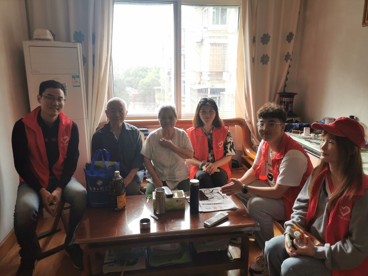 志愿者们与老人们坐在一起,亲切的跟老人们聊家常,了解他们的身体状况。其中一位老人还很自豪的向志愿者分享他曾经作为士兵参与过酒泉卫星的发射,同学们听得津津有味。老人还勉励在座的同学,要努力学习,为党、为国家贡献自己的一份力。