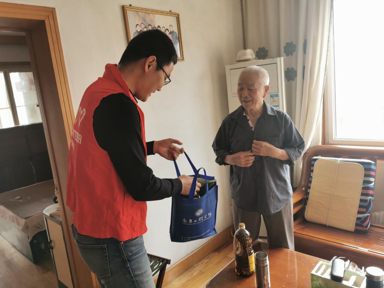 志愿者们来到江大南路社区党群服务中心,在社区工作人员的带领下,志愿者们纷纷向社区老人送去温暖,致以节日的问候。