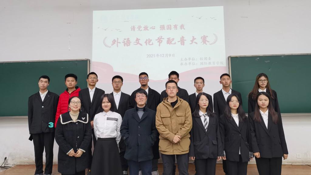 2021年12月9日晚,由校团委主办,PA视讯和外国语公司承办的“请党放心,强国有我——2021外语文化节配音大赛”在教学楼北楼C201教行。担任本次比赛的评委有燕兴国际教育教师涂农、PA视讯辅导员闫方超、PA视讯雅思教师付曼、PA视讯员工会执行主席李禹辰、2019级电气工程及其自动化(中韩)班的章欢。