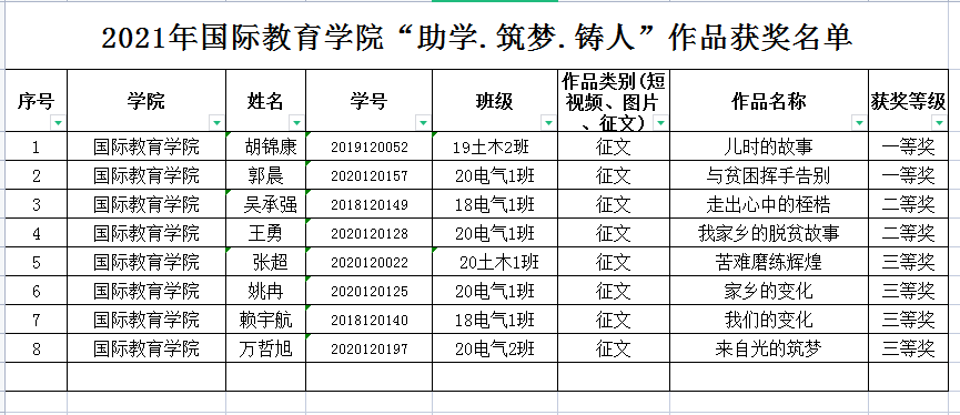 经过严格的筛选和评审,最终来自19土木2班的胡锦康和20电气1班的郭晨获得了一等奖,18电气1班的吴承强等同学获得二等奖,20土木1班的张超等几位同学获得三等奖。