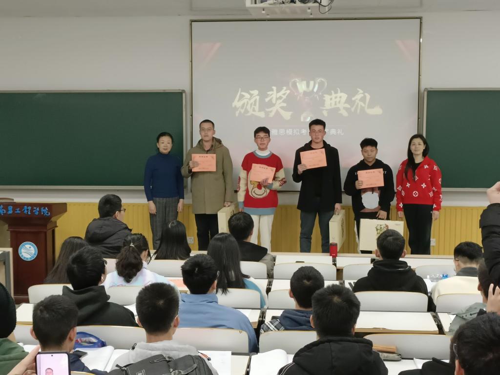 来自21电气(中韩)3班的曾加羽等7名同学获得了一等奖,来自20土木(中荷)3班的易宸康等14名同学获得了二等奖,来自20电气(中韩)3班的管涛等22名同学获得了三等奖,颁奖嘉宾依次为获奖同学颁发证书及奖品并合影留念,表扬同学们在雅思模拟考试中的优异成绩并鼓励同学们再接再励。随后,燕兴国际教育雅思授课教师涂农为同学们做了简短的考试分析,给同学们解疑释惑。雅思留学咨询教师丁思琴向同学们分享了目前国内欧亚留学形势和出国留学的优势。