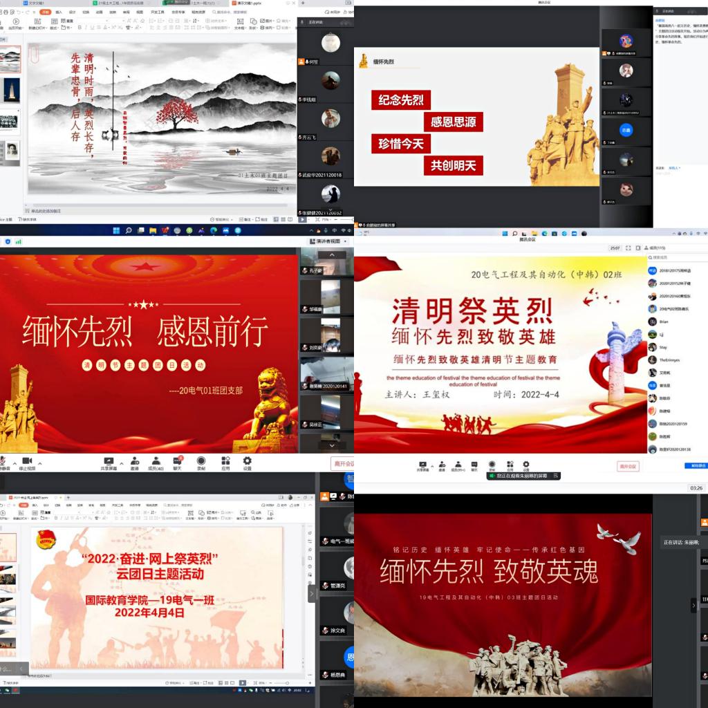 受疫情影响,本次团日活动通过网上致敬英烈、祭扫英烈、讲述英雄事迹的方式,营造人人争当红色基因的传承者、弘扬者、实践者的浓厚氛围,向为民族复兴、国家富强而英勇献身的民族英烈祭拜,表达对先烈们的崇高敬意。引导广大团员青年继承和发扬优良传统,树立家国情怀,珍惜来之不易的幸福生活。同学们纷纷表示,将更加珍惜当下美好生活,坚定理想信念,笃定报国之志,争做有理想、有本领、有担当的新时代青年。