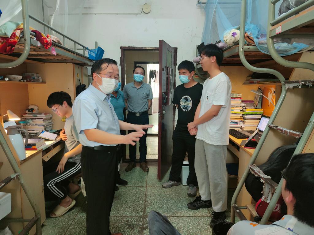 樊后保仔细查阅了员工体温检测等工作台账,了解员工宿舍疫情防控情况,要求公司和员工公寓按要求做好疫情防控工作。随后,深入寝室与员工亲切交谈交流,详细了解同学们的思想动态、学习安排、生活状况等,鼓励同学们面对疫情,调整心态,积极面对;提醒同学们认真学习,同时要加强锻炼,提升身体素质;要求同学们严格遵守公司疫情防控管理规定,共同守护校园安全。