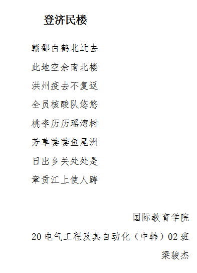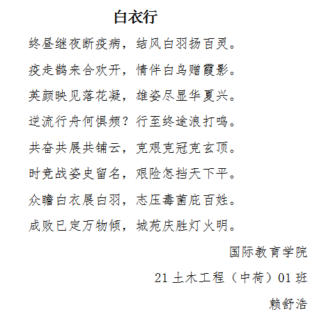 本次活动不仅发挥了广大师生的诗词才华,更弘扬了抗疫精神。