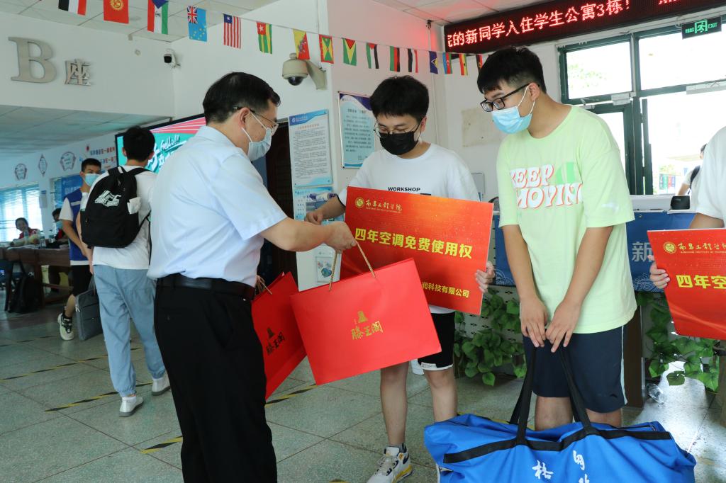 为进一步了解新生的入校状况,加强师生交流,切实解决新生所遇到的实际问题,9月9日正值中秋之际,副董事长樊后保、公司党委书记陈春柏、副书记戴国星和全体辅导员一同来到员工宿舍3栋带着月饼看望慰问新生,发放爱心大礼包和空调免费租赁卡。