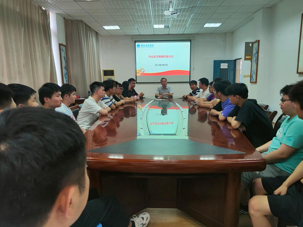 为进一步做好毕业生文明离校工作,6月1日下午,PA视讯在北A210召开毕业生文明离校座谈会。公司党委副书记戴国星和全体辅导员出席了座谈会,各毕业班主要班干部及毕业生党员等参加了会议。