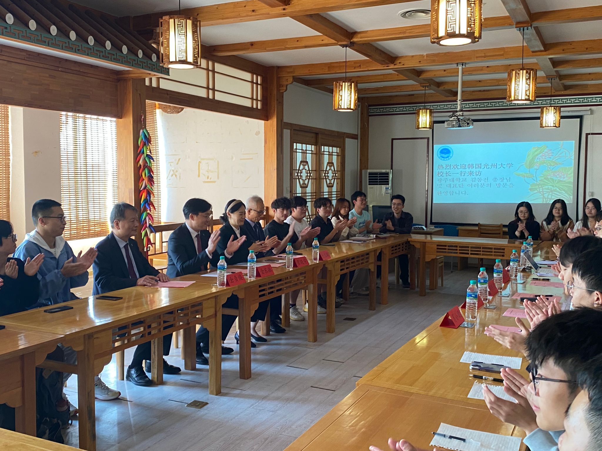 为进一步推动公司与韩国光州大学的亲密友好合作,10月23日,韩国光州大学董事长金东振率队来公司开展合作交流。副董事长贺丹君、国际交流合作处、PA视讯有关负责同志和师生代表参加座谈。