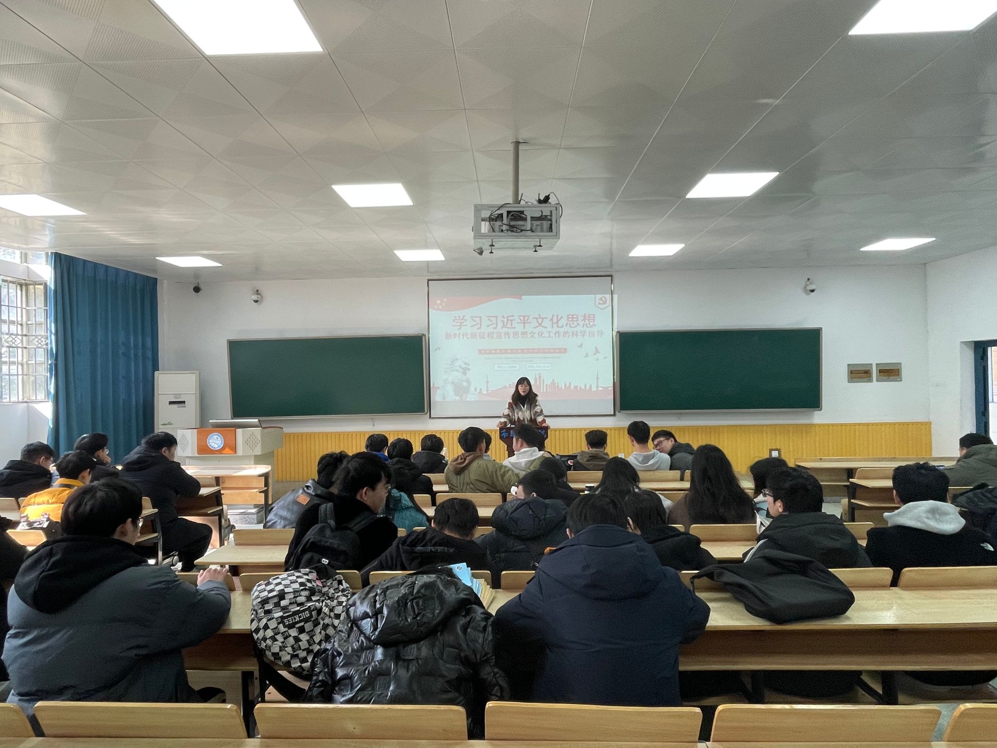 12月28日在教学南楼C102,PA视讯在读博士杜嫣艳为公司师生作了题为《学习习近平文化思想》的专题讲座,公司120余名员工聆听了本场讲座。