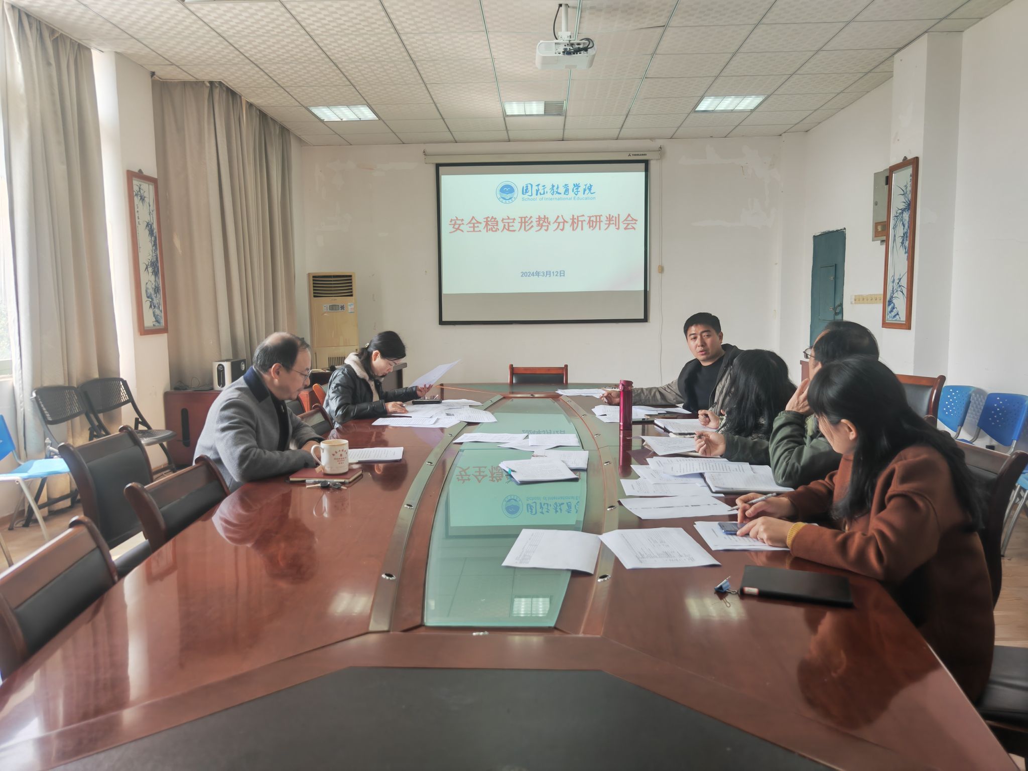 为进一步强化校园安全稳定工作,提高师生的安全意识,国际教育公司于3月12日召开了安全稳定形势研判分析会,全体教职工参加了此次会议。