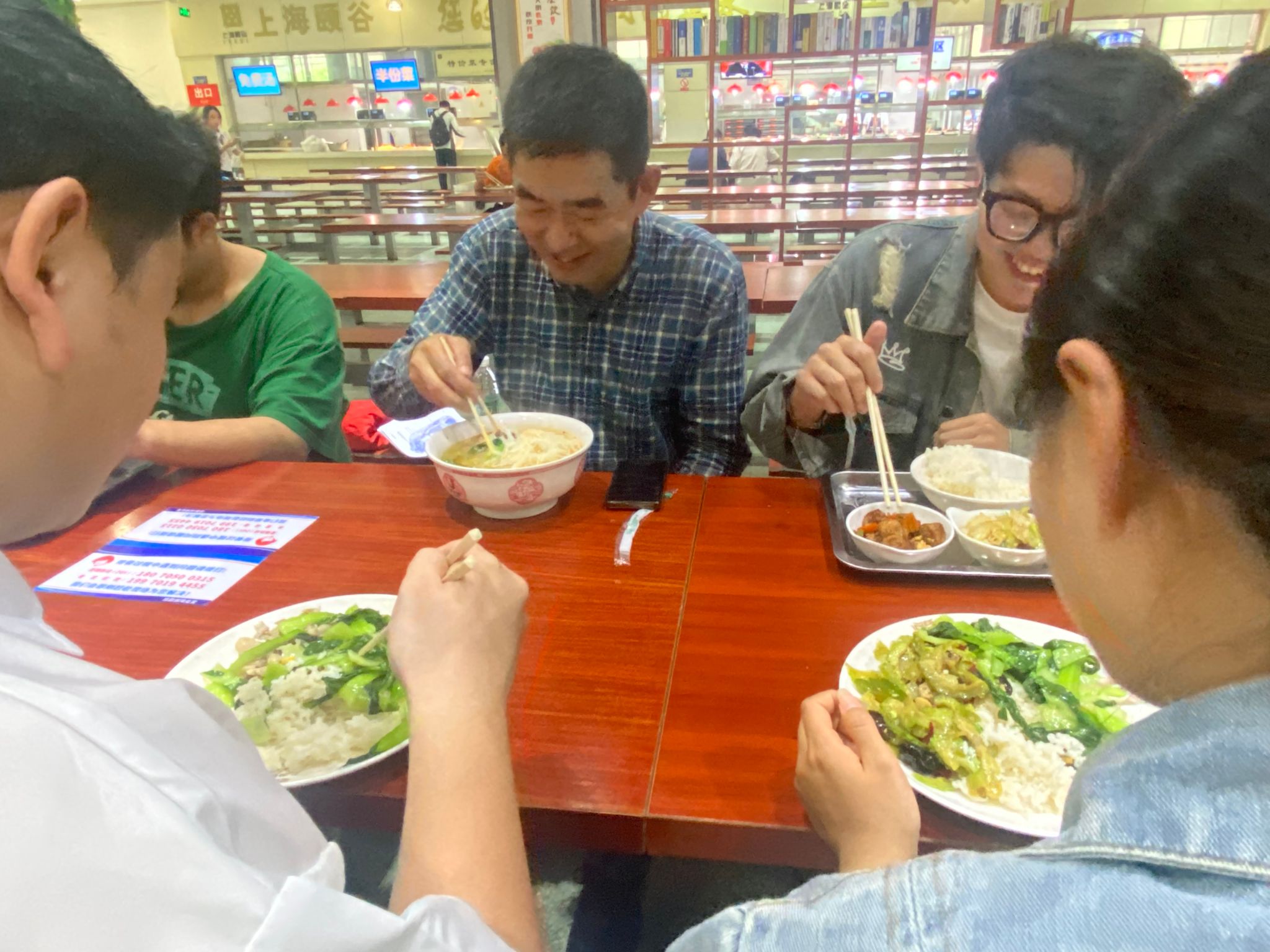 宣讲结束后,李董事长到员工公寓3栋走访看望员工,了解员工的思想、学习、生活情况,并查看员工公寓、公司食堂和快递中心的基本设施建设和生产安全,在食堂内与师生代表开展帮厨活动并共进晚餐,亲切交流。