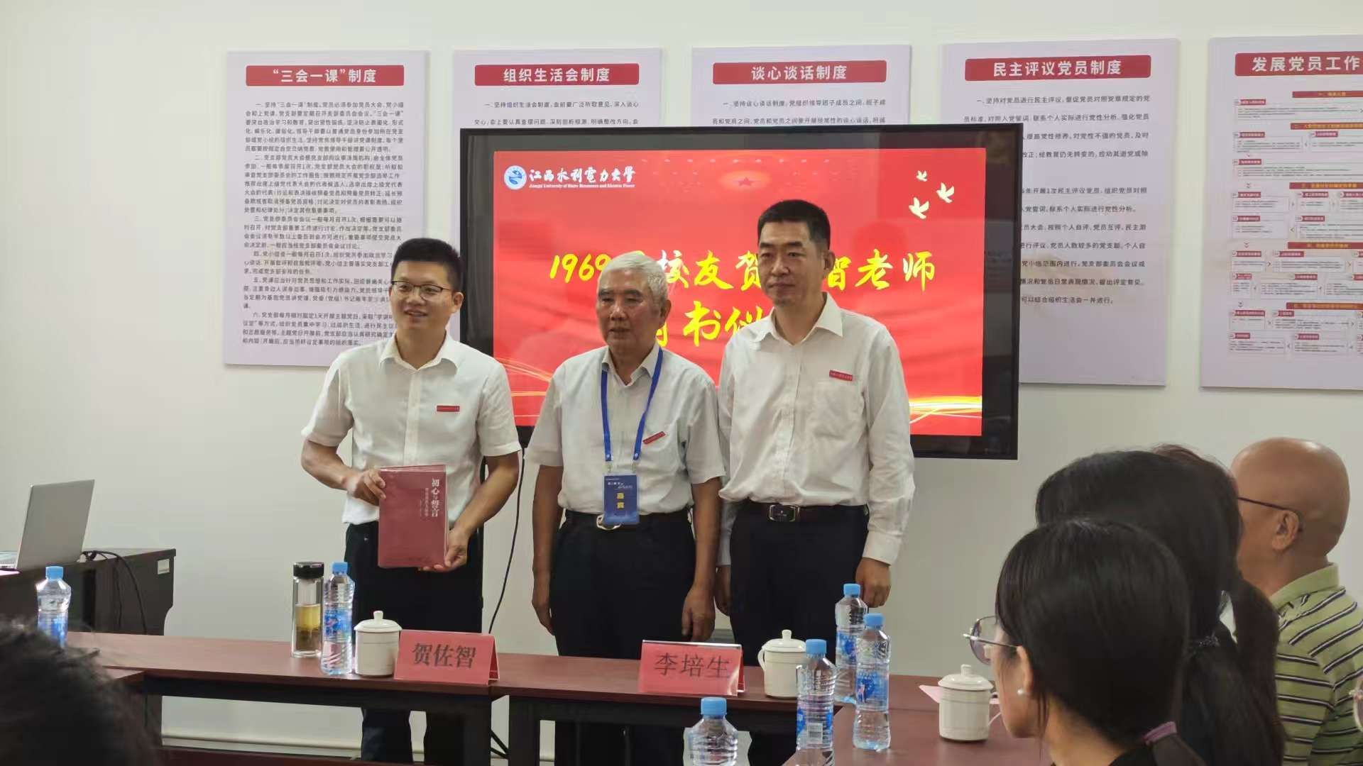 贺佐智详细讲述了井冈山革命根据地时期老一辈红军革命事迹以及祖父贺页朵帮助红军、入党等经历,特别是贺页朵不惜冒死保存自己的入党誓词的具体过程,以及其四兄弟如何在祖父贺页朵的精神感召下加入中国共产党,自觉传承红色基因,以祖父名义出资200多万元在家乡设立教育基金、引进产业助力家乡发展等事迹。讲座现场,贺佐智向公司捐赠个人珍贵藏书,互动中解答师生提问,并寄语现场同学志存高远、学好本领、为国奉献,带领全体师生党员重温入党誓词。(文/戴国星 图/罗慧艳 曹雨婷 )