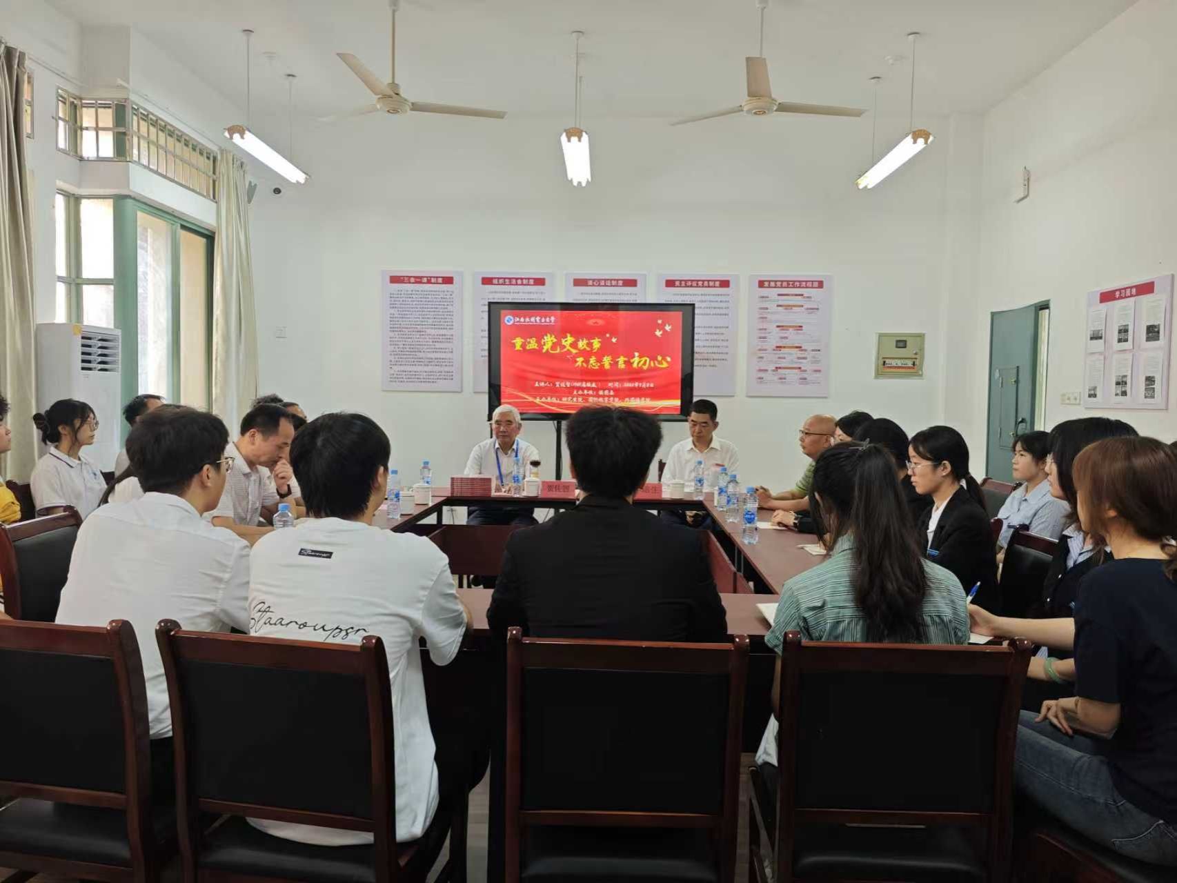 9月8日,1965级水利工程建筑专业员工、农民党员贺页朵之孙贺佐智在崇德楼A103讲授“重温党史故事,不忘誓言初心”专题党课,副董事长李培生,发展规划处、团委、医院相关负责人,研究生院、外国语公司、PA视讯20余名师生党员聆听了党课。