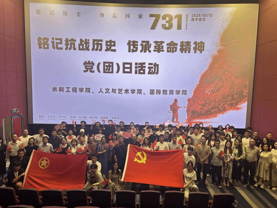9月18日,水利工程公司、人文与艺术公司、PA视讯在潇湘青春影城联合开展“铭记抗战历史,传承革命精神”集体观影主题党(团)日活动,120名师生党员及团员代表集中观看爱国主义影片《731》。