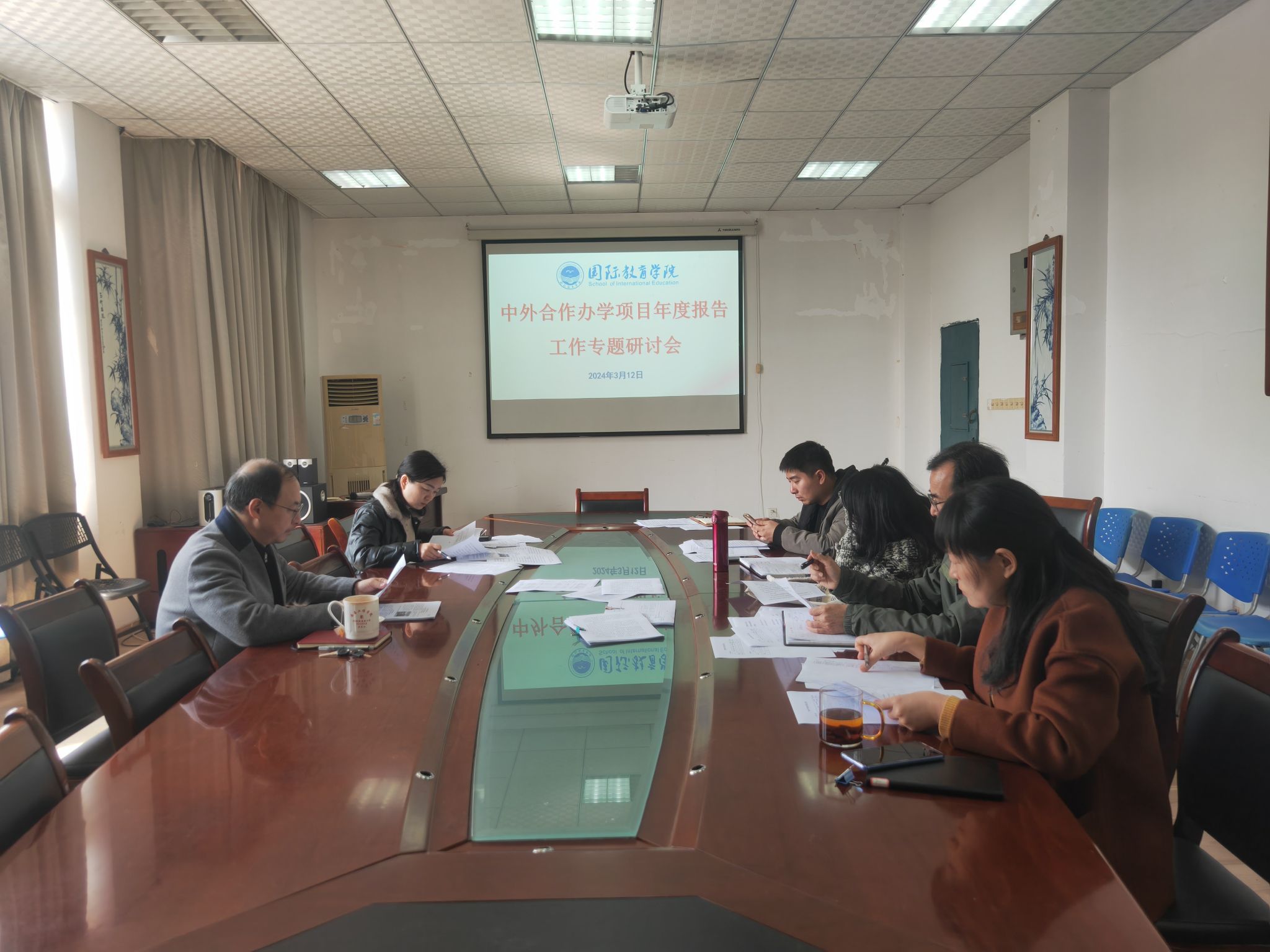 研讨会上,教务办公室主任首先就中外合作办学项目2023年度报告进行了全面梳理和分析。详细介绍了项目在办学情况、教学质量、团队队伍、员工发展等方面的成果,同时指出了在合作办学过程中遇到的困难和挑战。