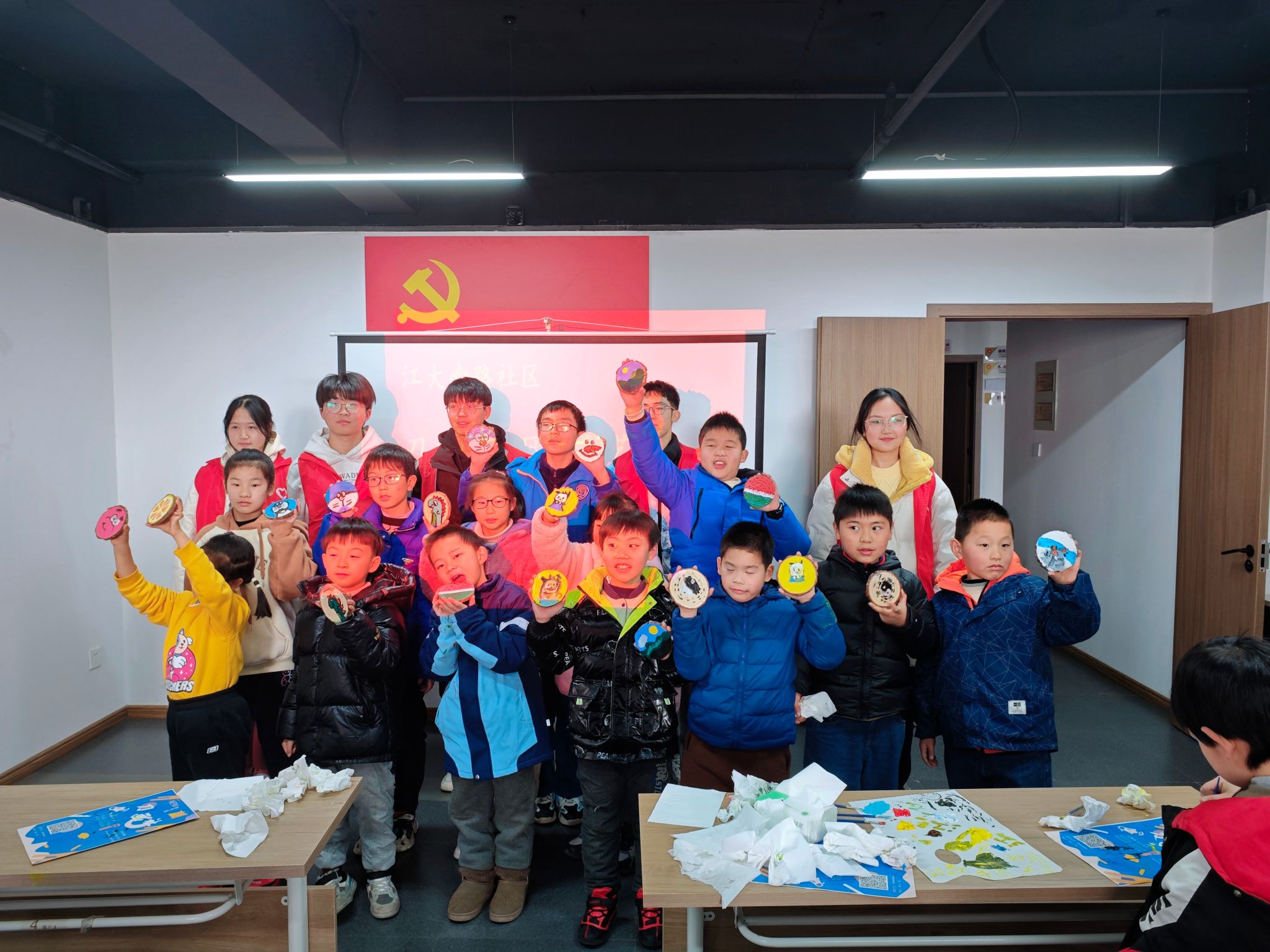 在本次志愿者活动中,PA视讯的青年师生志愿者们为现场的儿童上了一堂生动的刀画体验课。青年志愿者们为他们准备了颜料、纸张、笔、剪刀等工具,让他们可以根据个人喜好选择图案进行创作。在观看完学习视频后,在志愿者和儿童们的共同努力下,所有儿童成功完成了自己的作品,都展示出自己的创作成果,脸上洋溢着自豪与快乐。紧接着,青年志愿者们与儿童们进行了各种有趣的游戏活动,如跳棋、扑克牌等,现场气氛热烈活跃,大家都沉浸在欢乐的海洋中。