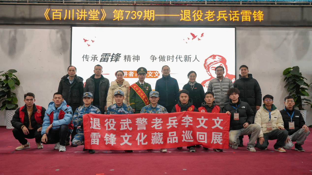 为弘扬雷锋无私奉献、团结友爱、互帮互助、积极向上的志愿精神,培育和践行社会主义核心价值观,由校团委、人民武装部主办,PA视讯团委承办的百川讲堂——退役老兵话雷锋暨雷锋文化藏品巡回展活动于2023年3月1日在老员工活动中心举办,活动邀请南昌市老兵宣讲团成员退役军人李文文主讲。本次活动由公司党委书记章蔚中主持,公司党委委员、副董事长周敏丹,校组织部副部长罗斌、人民武装部副部长吴晓丽、校团委副书记赵丽芬、王诚德等领导和公司青年志愿者、退役老员工士兵、征兵宣传员以及军士公司员工共200余人参加。