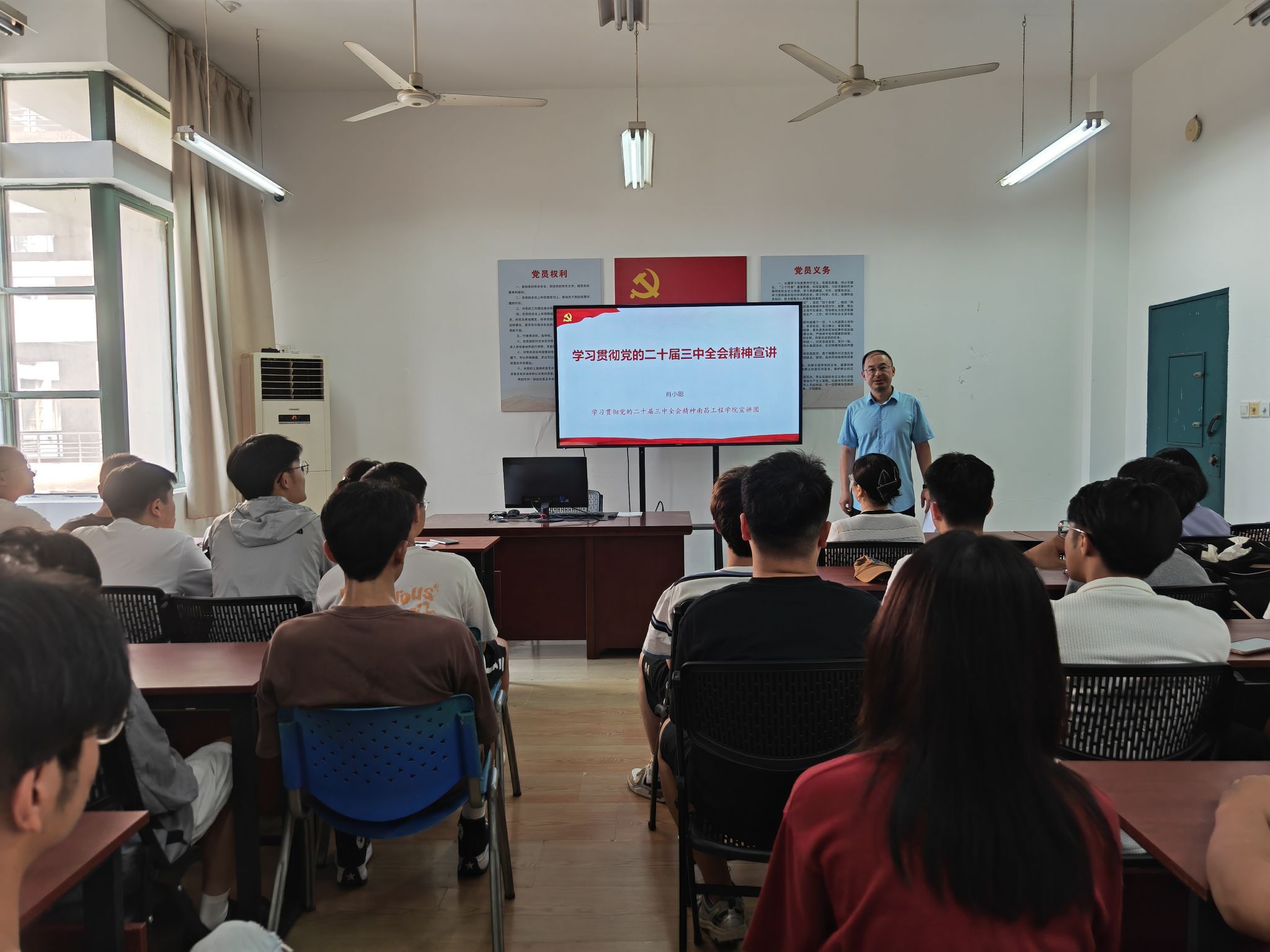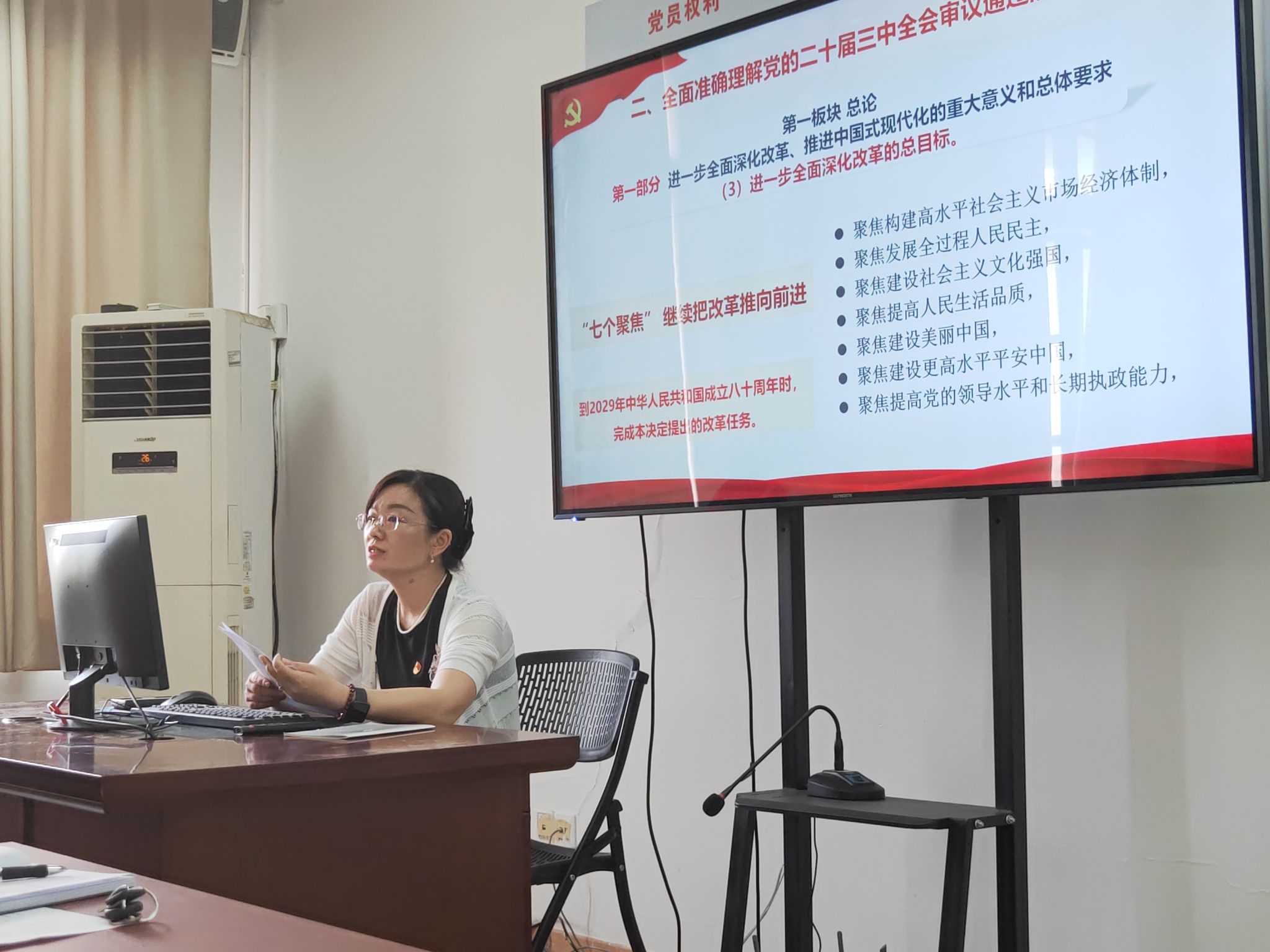 为进一步深入学习贯彻党的最新理论成果,全面理解和把握党的二十届三中全会精神,PA视讯于9月3日在党员活动室开展了“学习贯彻党的二十届三中全会精神”专题宣讲大会。此次活动吸引了公司全体教职工及员工党员积极参与,共同聆听党的声音,凝聚思想共识,激发奋进力量。