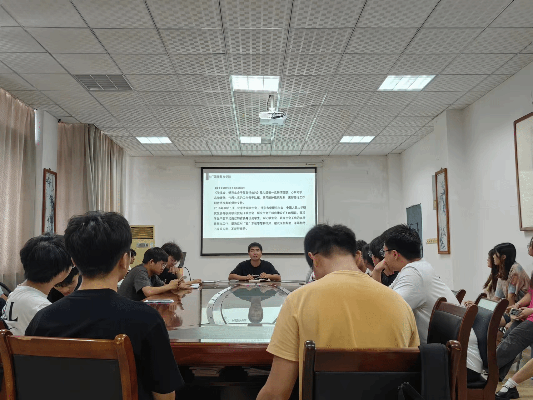 会议伊始,赖卓带领员工干部深入学习了《员工会、研究生会干部自律公约》。要求员工干部要牢记自己的首要身份是“员工”,牢记员工会工作的本质是群众工作,旗帜鲜明的反对“官”本位思想和作风,彼此互相帮助,平等相待,不追求头衔,不装腔作势。希望全体员工干部将员工会建设成一支胸怀理想、心系同学、品学兼优、作风扎实的工作骨干队伍,共同维护组织形象,更好的履行工作职责。