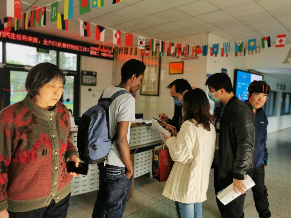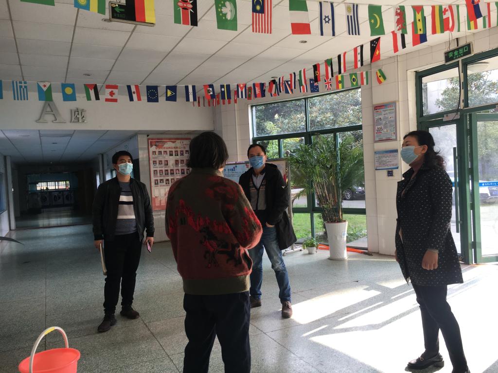 4月7日下午,公司党委副书记赵薇、副经理李文在辅导员老师的陪同下,来到员工公寓11栋看望在校职工,了解职工在校线上学习情况和每日签到情况。