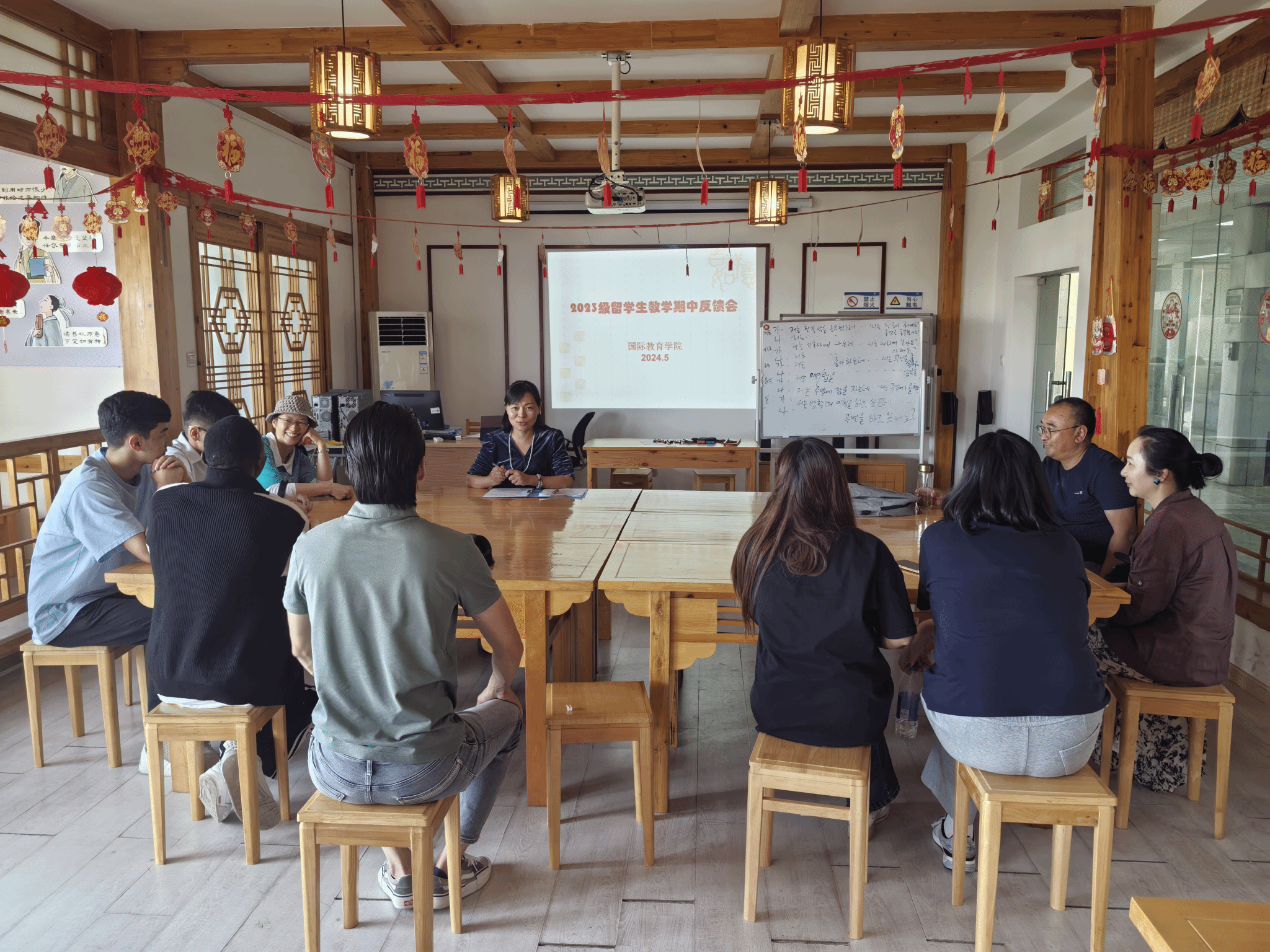 最后,与会教师们勉励职工们加油,加大学习投入、有任何学习的问题随时可以向老师提出需求,尽早实现汉语学习目标,为更好的融入校园生活和学习而努力。